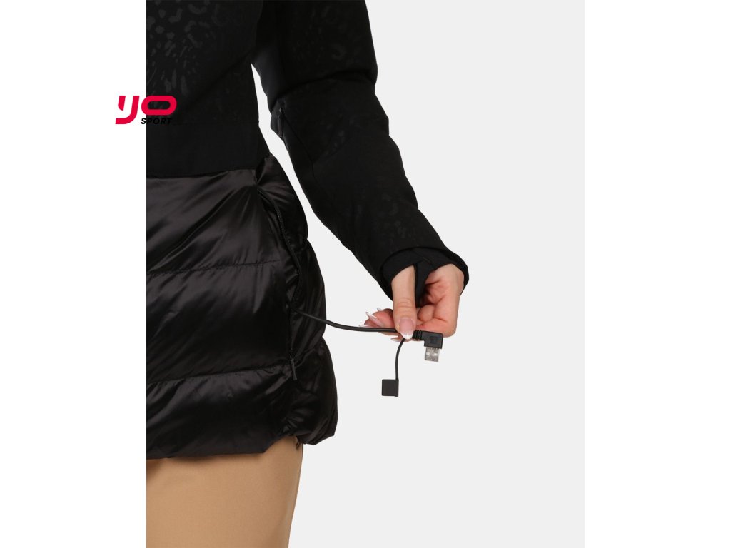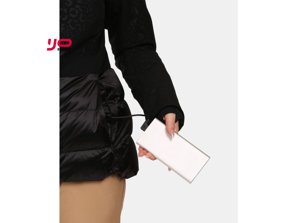 - Integrovaný vyhřívací systém, který aktivujete stisknutím tlačítka na paži po připojení powerbanky (powerbanka není součástí bundy) do USB konektoru, umístěného v kapse bundy. Vyhřívání nabízí 3 teplotní režimy.